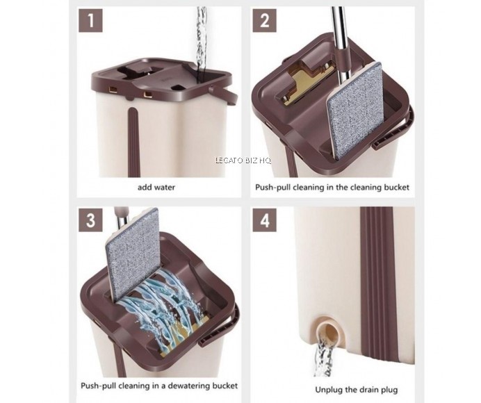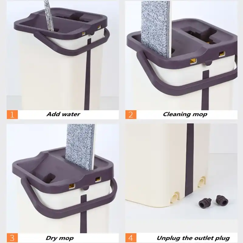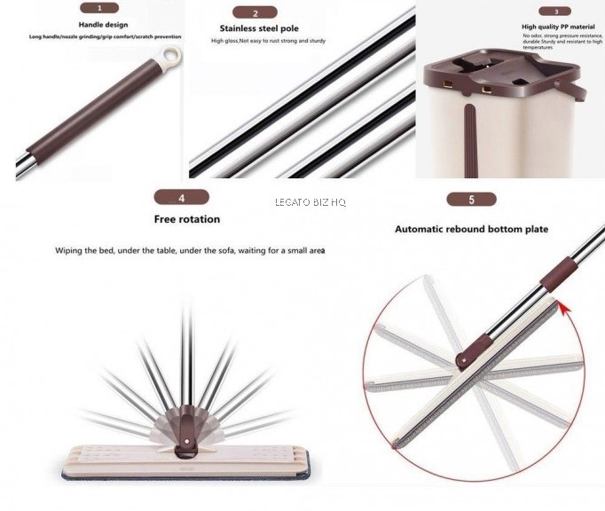 Dilengkapi dengan baldi plastik yang tahan lama dan mempunyai saluran air untuk keluarkan air kotor dari mop. Mop juga diperah secara automatik. MOP ANTI MALAS dapat membantu selesaikan masalah dengan sekali sapu sahaja